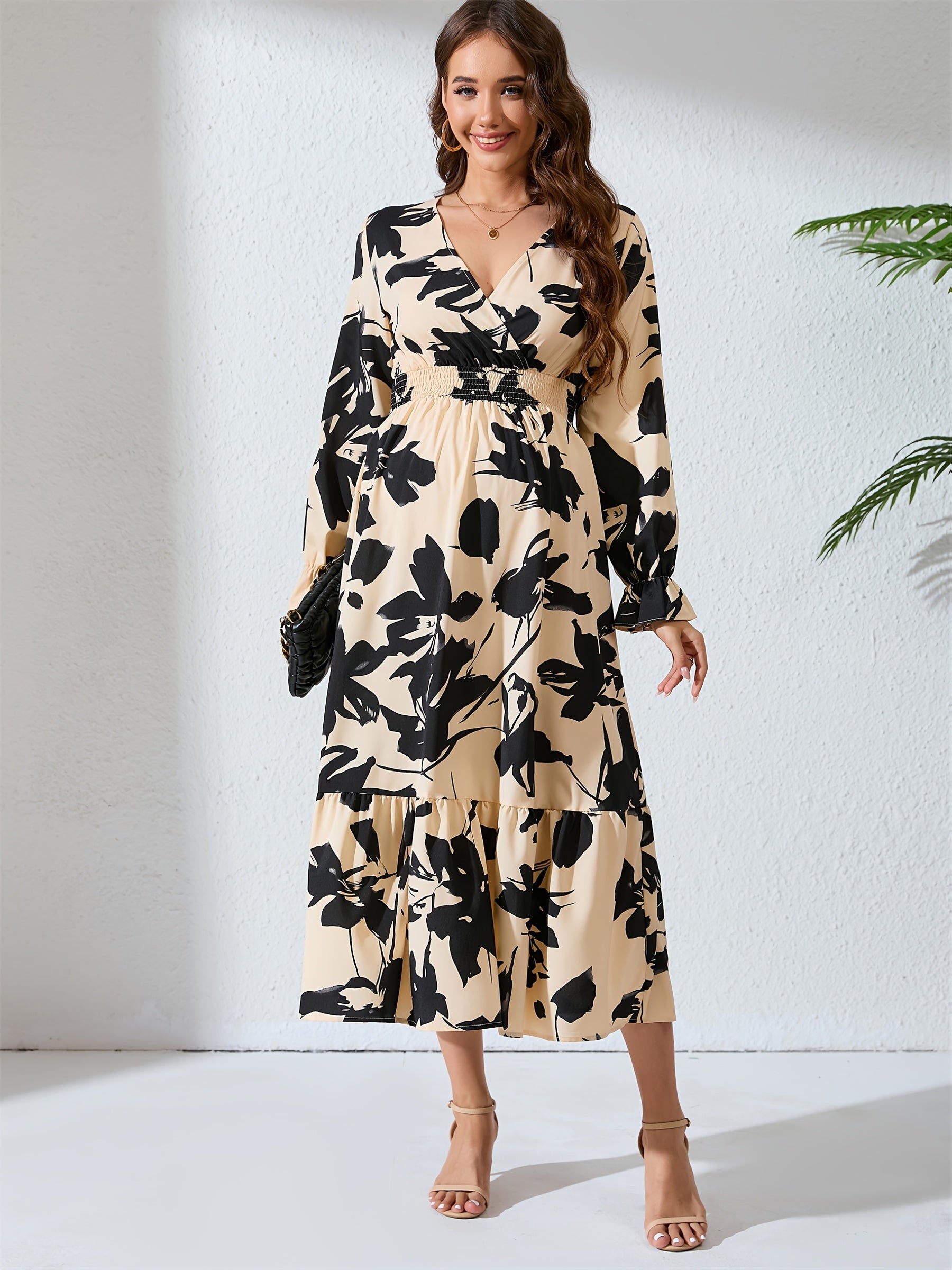Ze flatteert, ook op dagen dat je twijfelt De elegante V-hals en vloeiende rok laten jouw silhouet op z’n mooist uitkomen. Zelfs als je je niet op je best voelt, straal je in Floréssa.