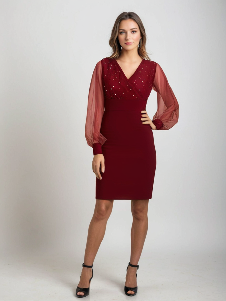 Een glamoureuze jurk die perfect is voor speciale gelegenheden. Met haar sprankelende pailletten en flatterende pasvorm ben jij het stralende middelpunt van elk feest.